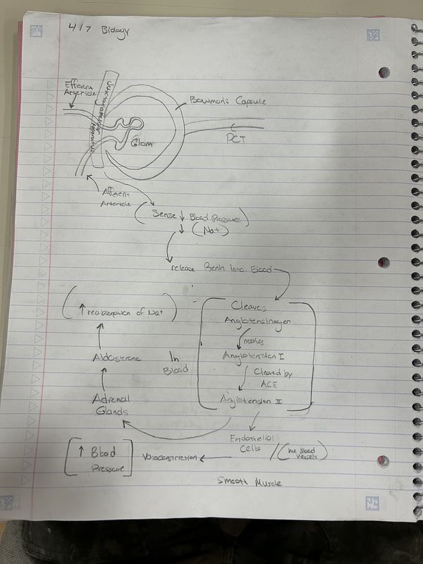Example of BIOL 1107 student's renin-angiotensin-aldosterone system negative feedback loop. Used with permission.